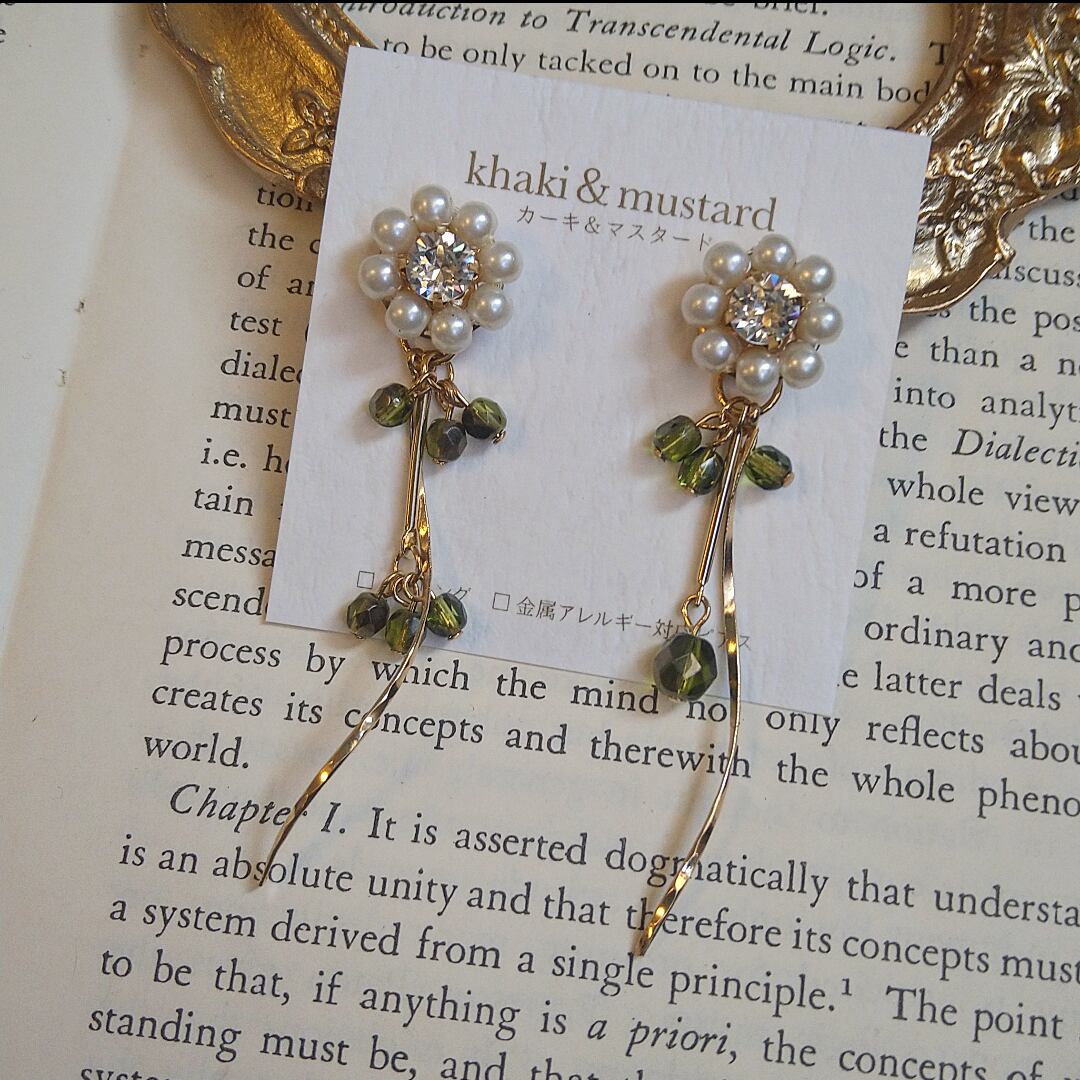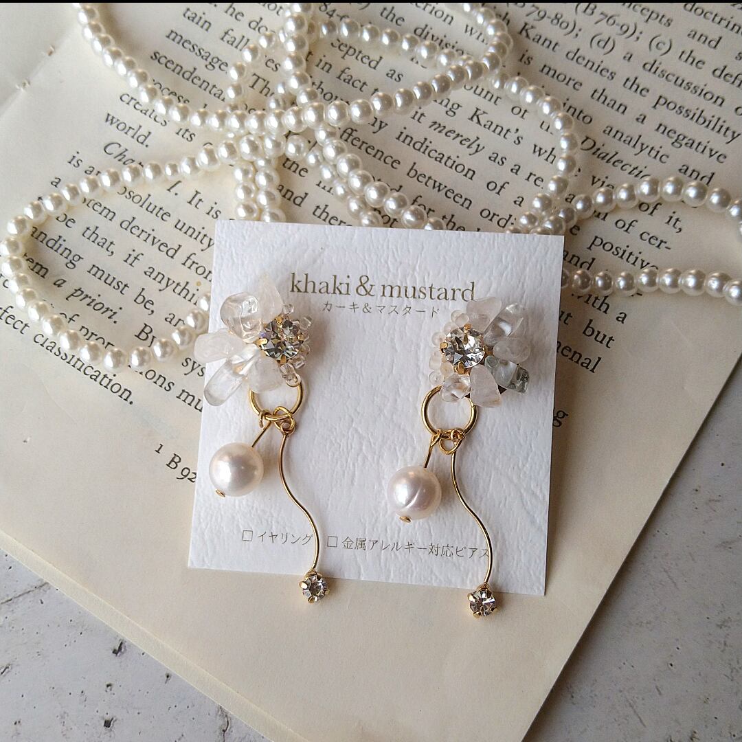 2way*スワロフスキーとパールの大人のお花ピアス/イヤリング