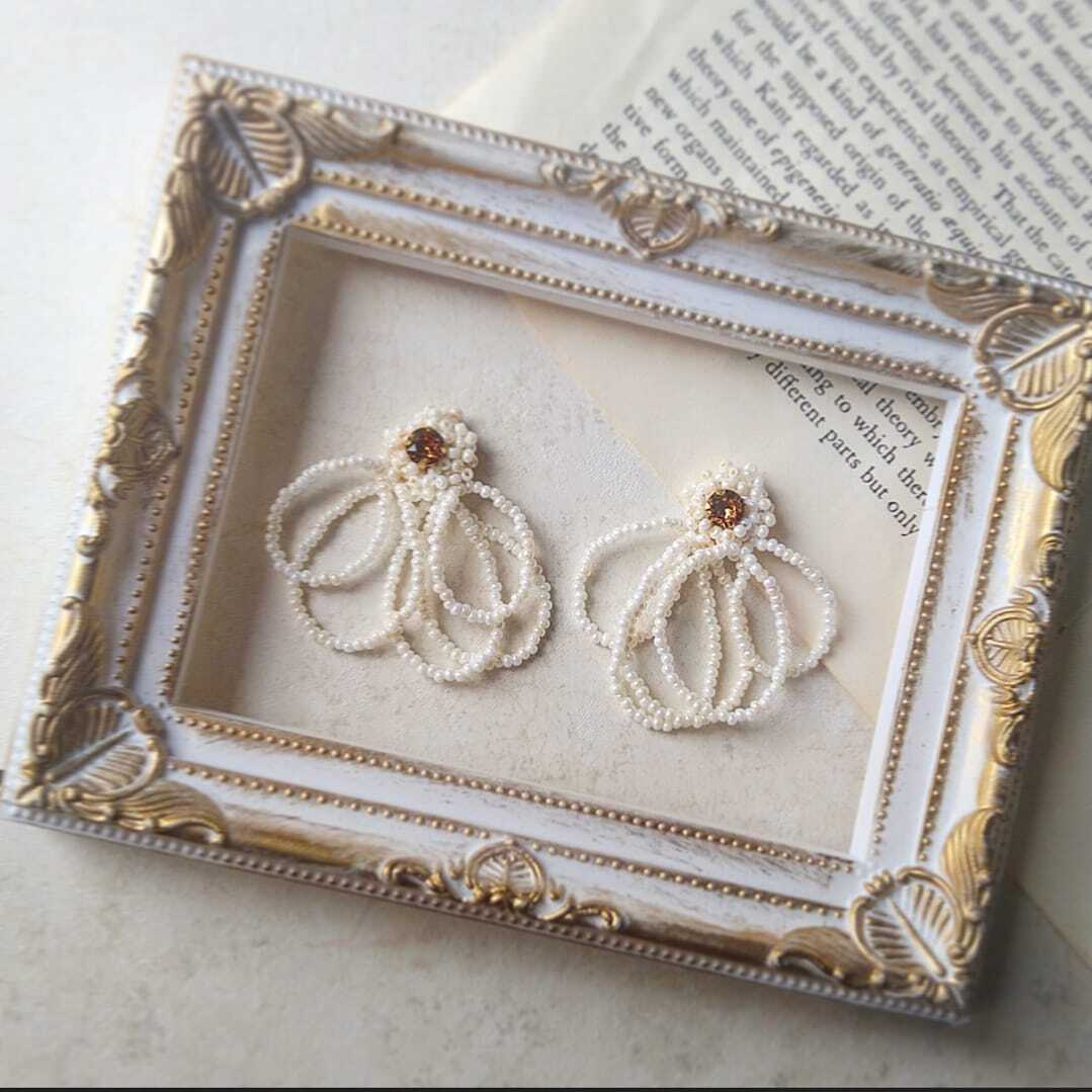 落ち着いたベイシックなトップスやワンピースなどと合わせていただくと よりピアス(イヤリング)が映えますよ!