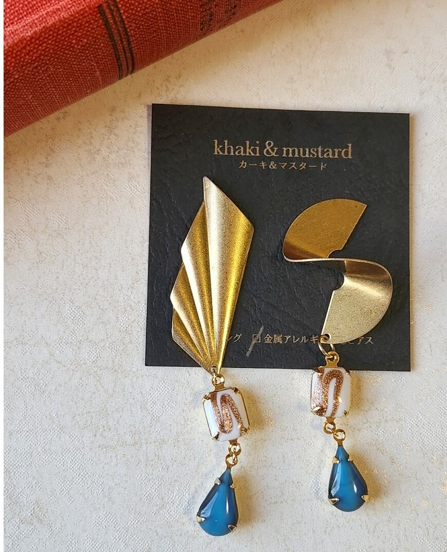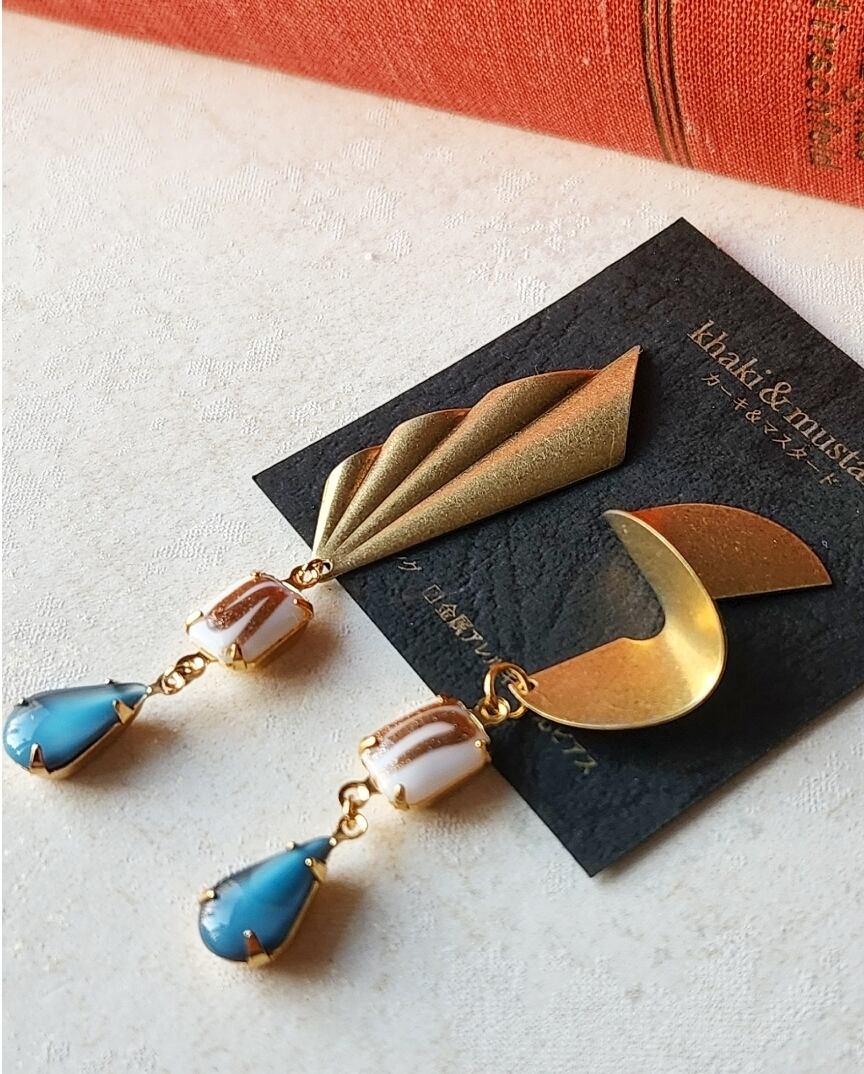 耳元にくり大ぶりの真鍮がアシンメトリーで、