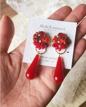 同じ赤でも 異素材、それぞれ色味、形の違うこだわりの赤のパーツを1つ1つ編み込みました。