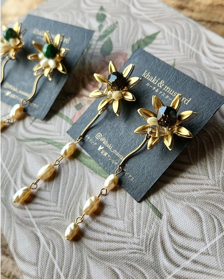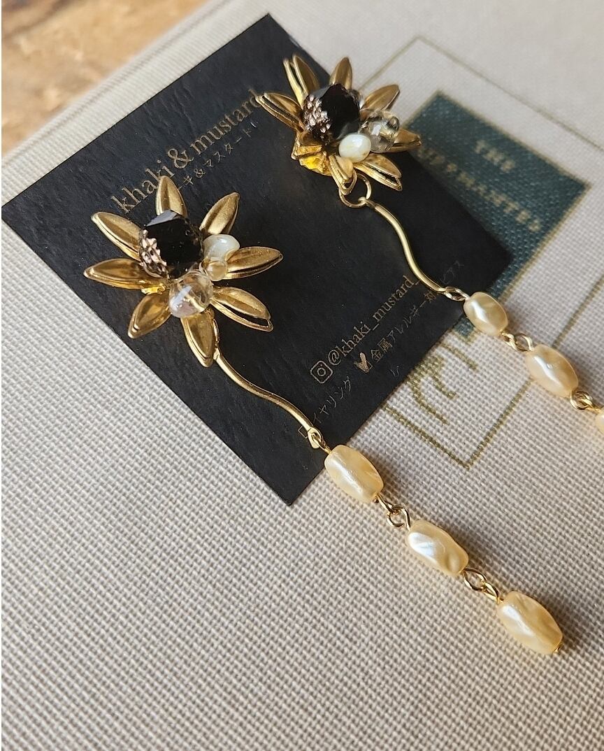 風合いが魅力のフラワーモチーフの真鍮パーツと、
