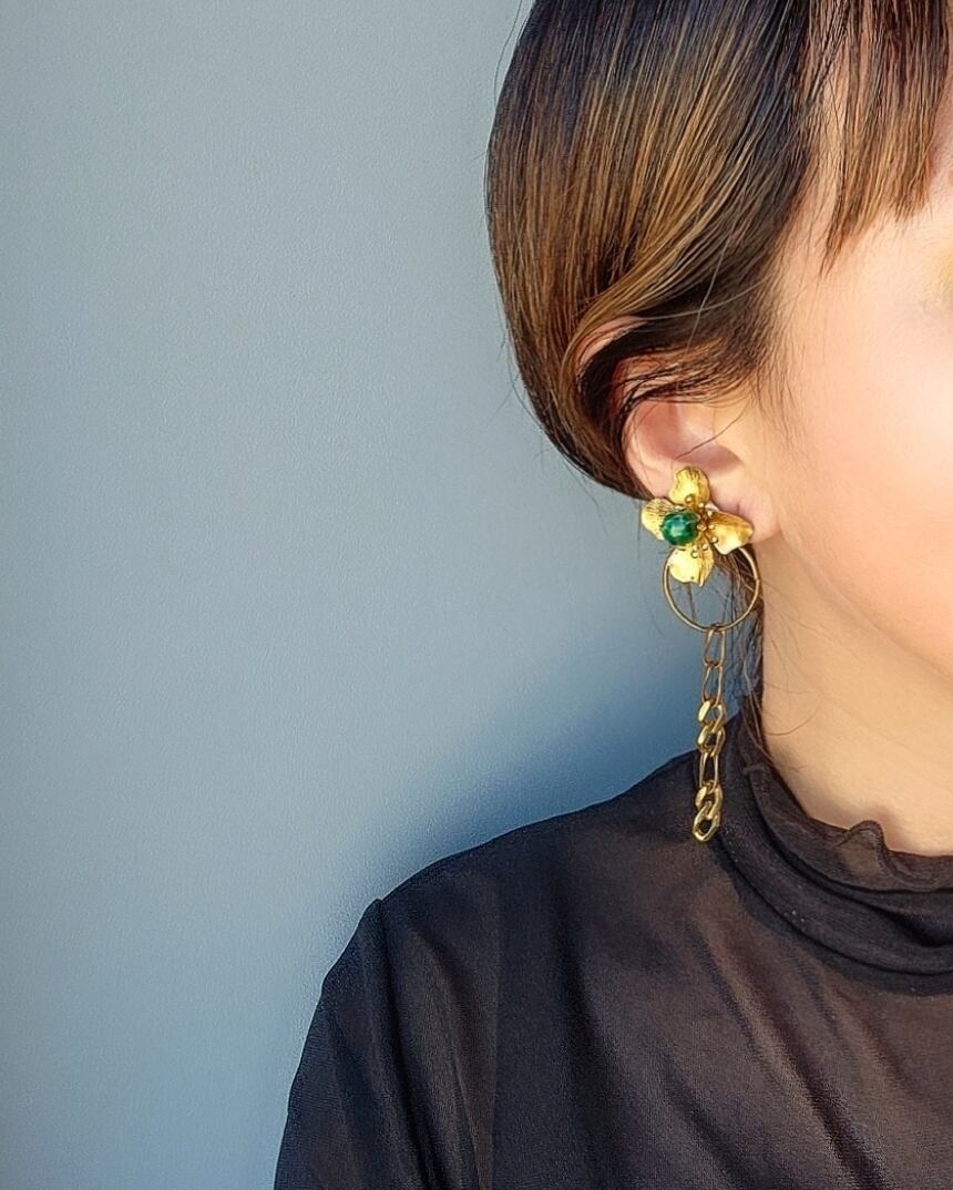 秋冬コーデに合わせたくなるゴールドとヴィンテージパーツを合わせたFlowerモチーフで、