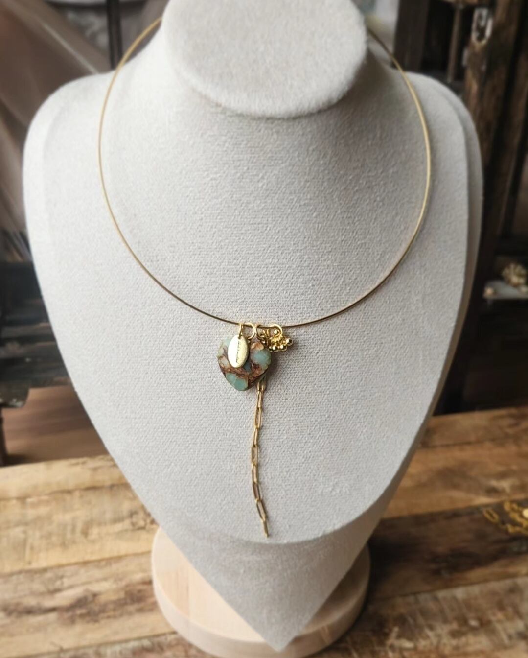 stainless♡カスタムできるワイヤーチョーカーネックレス♡天然石× ハート、ステンレス製、金属アレルギー対応、個性的